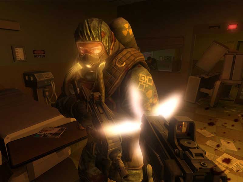 Otro detalle que me gustó mucho es que, a diferencia de otros FPS, en F.E.A.R. 2: Project Origin se modeló al personaje entero, o sea, en cualquier FPS sólo vez tus brazos y tu arma, pero si bajas la vista no vez tus pies. En F.E.A.R. 2: Project Origin sí tienes cuerpo real, piernas, 2 brazos, cara (ésta sólo la vez en espejos). Eso te permite un mayor control con tu entorno.