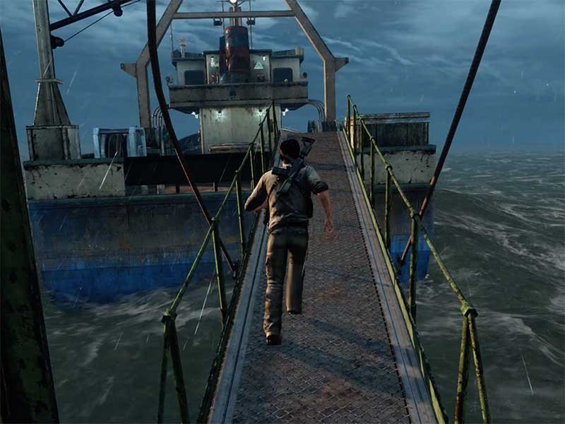 Si bien esta linealidad se hace para darle mayor peso en lo cinemático, creo que más libertad no hubiera estorbado y ayudaría a sentirse más vasto. Hay una excelente escena en un barco (que además se mueve en tiempo real a causa de las olas y eso te hace que pierdas el equilibrio) donde pasas puertas tras puertas, todas cerradas y sin posibilidad de explorar más allá del camino principal. No es como si hubiera mucho que encontrar tampoco pues las armas caen a montón con cada enemigo derrotado, sólo puedes encontrar tesoros que de nada sirven en el juego.