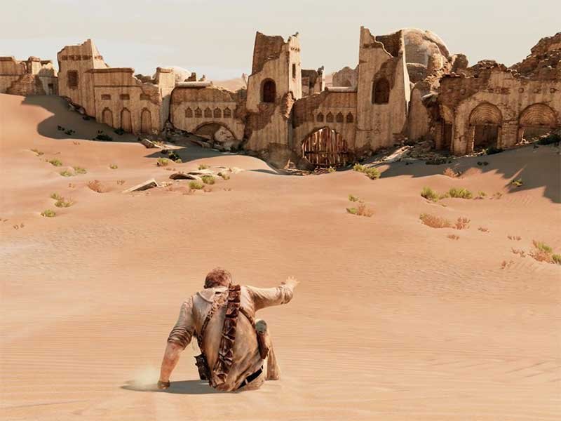 Como mencioné, los gráficos son hermosos y por eso nos encontramos frente a mundos muy interesante que por desgracia no permiten ser explorados. Uncharted 3: Drake’s Deception es completamente lineal y jamás te da oportunidad de acceder a zonas de diferentes formas.